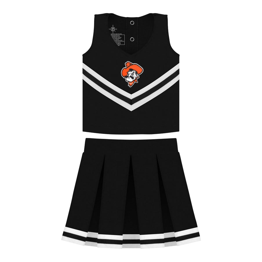 - Upgrade Your Daughter’s Team Spirit this year with a new look! This Toddler or Youth Creative Knitwear Team Cheer Set features a V-Neck-sleeveless Top as well as a matching Team Colored pleated Skirt and Matching Team Colored Bloomers. This Classic look Cheer set is the perfect outfit for your little fan on Gameday, Halloween Costume or any time she wants to support her favorite NCAA team.