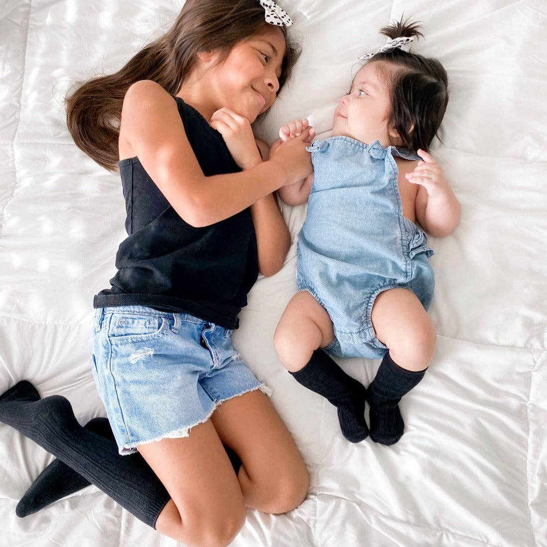 Black Cable Knit Knee High Socks for babies, toddlers and girls!