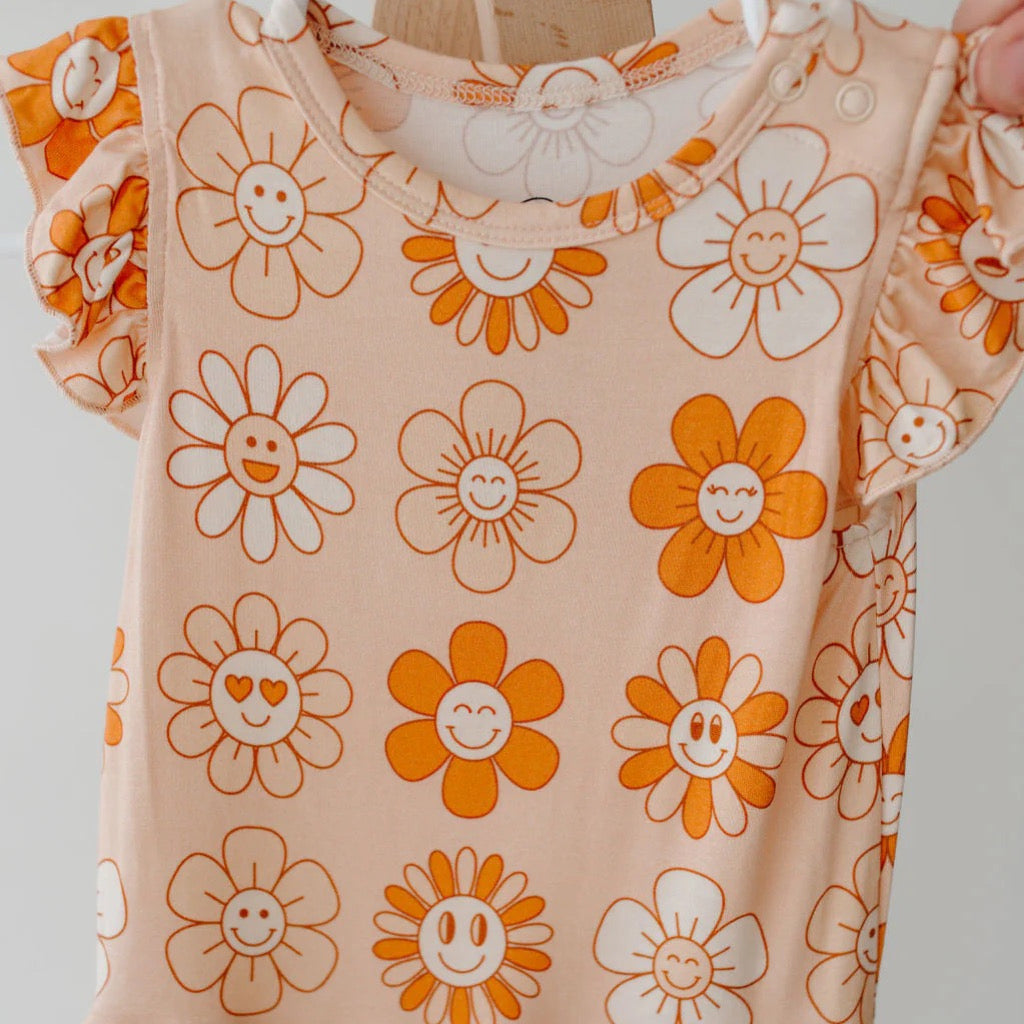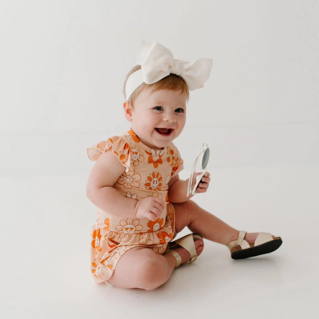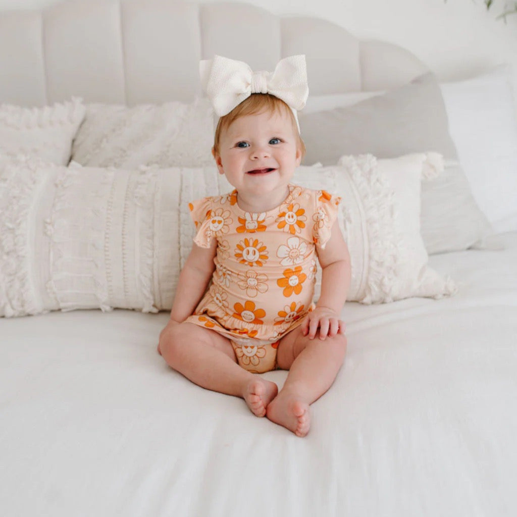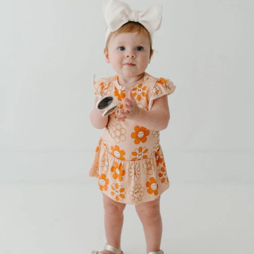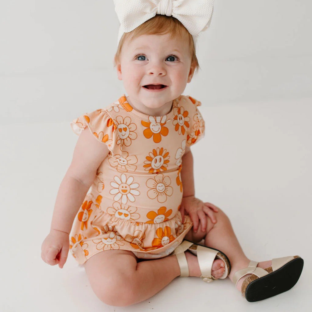 - Stay cool and comfortable all day long! Made from soft bamboo and stretchy spandex, this romper is gentle on sensitive skin. Plus, the ruffled sleeves and skirt add a touch of sweetness to your little one's summer wardrobe. Easy to care for so you can spend more time with your little one and less time doing laundry.