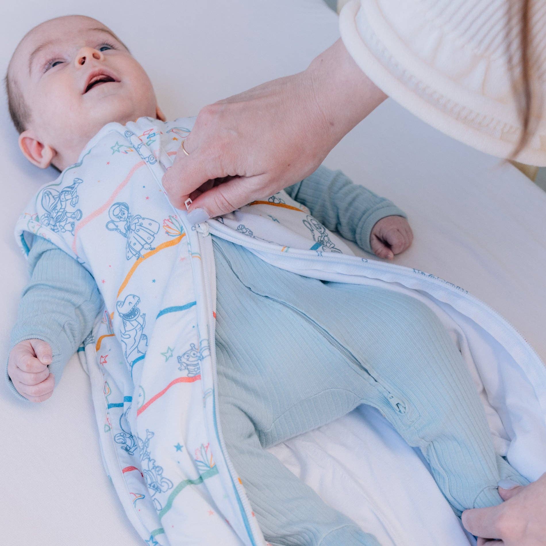The Disney Pixar Toy Playtime Story Milk Snob® Sleep Bag is the softest, coziest blanket alternative for babies. This sleep sack is the perfect weight to keep your baby comfortable all night long (so YOU both can get more sleep!).