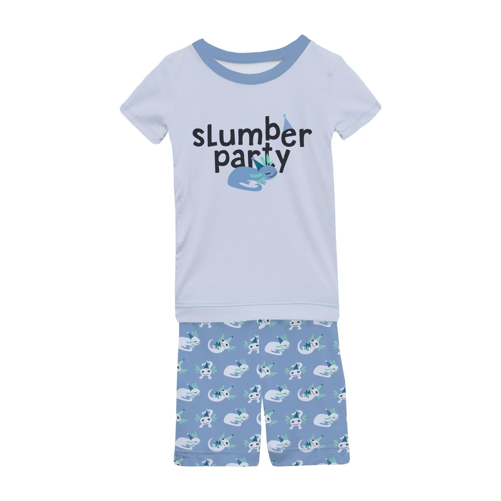 Dream Blue Axolotl Party Short Sleeve Graphic Tee Pajama Set