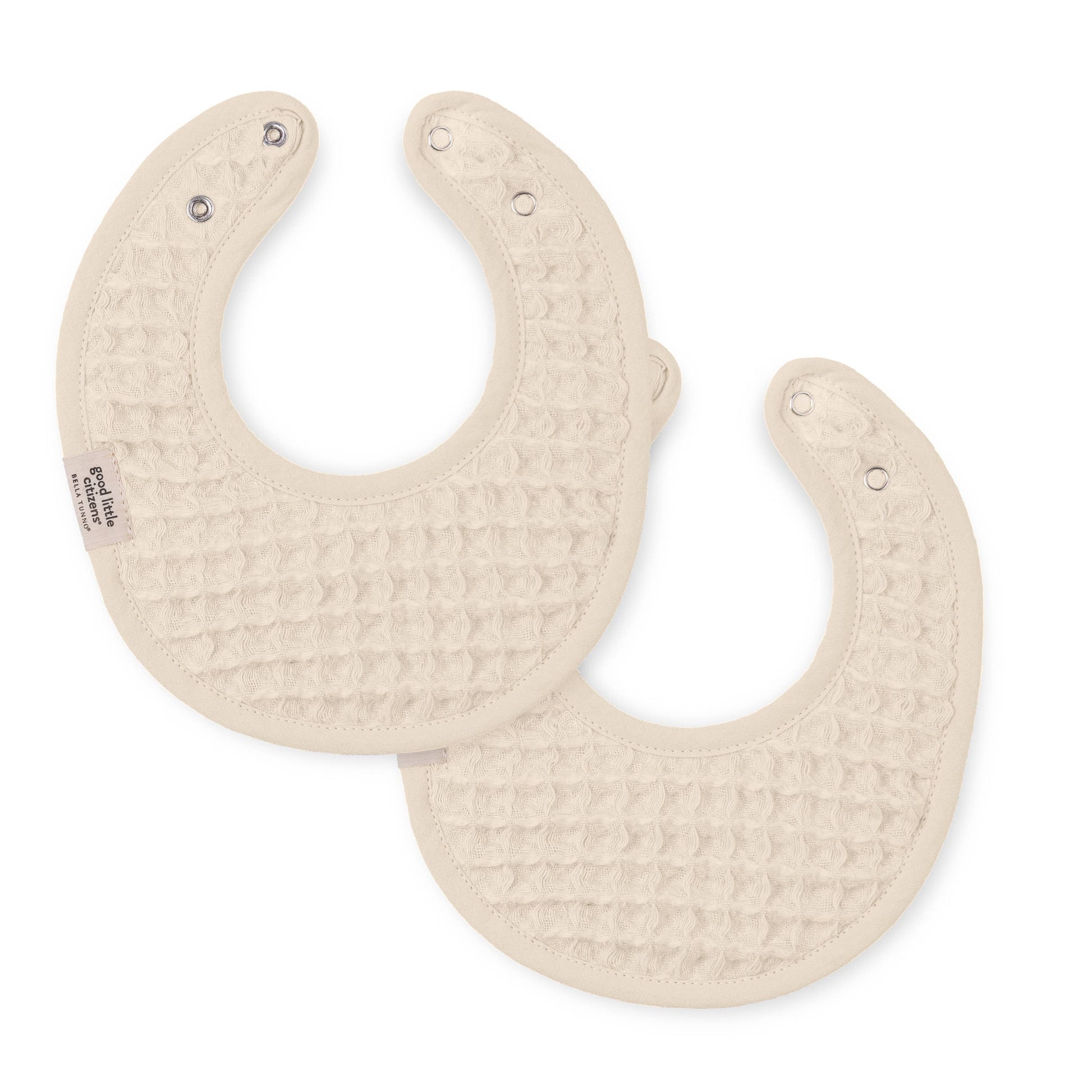 Designed with droolers and teethers in mind! These reversible drool bibs help to keep baby dry, comfortable, and colorful. Featuring our luxe soft waffle weave on one side and a highly absorbent terry on the other. We sized our bibs for infants and babies on the move. All fabrics are OEKO-TEX® certified and sustainably sourced, but the commitment to our environment goes deeper - our terry is recycled polyester made from plastic bottles removed from oceans and landfills. Each set keeps 1 plastic bottle out of landfills.