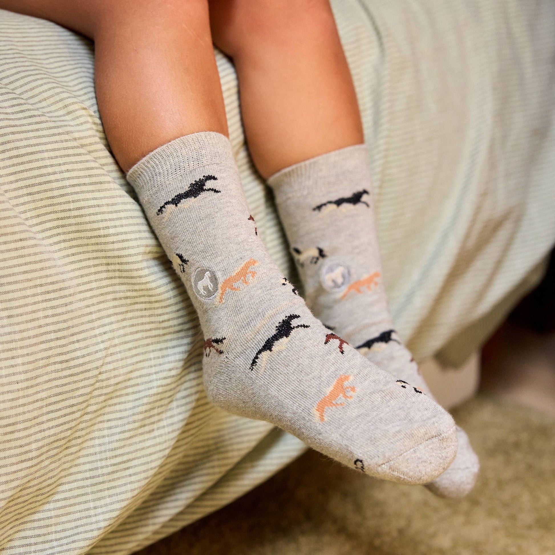 Giddy up! Designed with playful ponies and tons of comfort, these gray horse socks are perfect for kids who can’t get enough of their favorite foal friends.