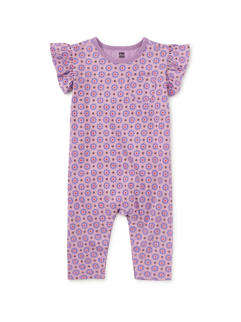 This romper is designed to make dressing your little one as delightful as watching their first giggles. Crafted from soft 100% cotton jersey, it ensures comfort for baby's sensitive skin. The ruffle sleeves add a charming touch, while the chest patch pocket offers a practical detail. Snaps at the inseam facilitate quick diaper changes, making life easier for caregivers. A thoughtful gift that combines style and function.