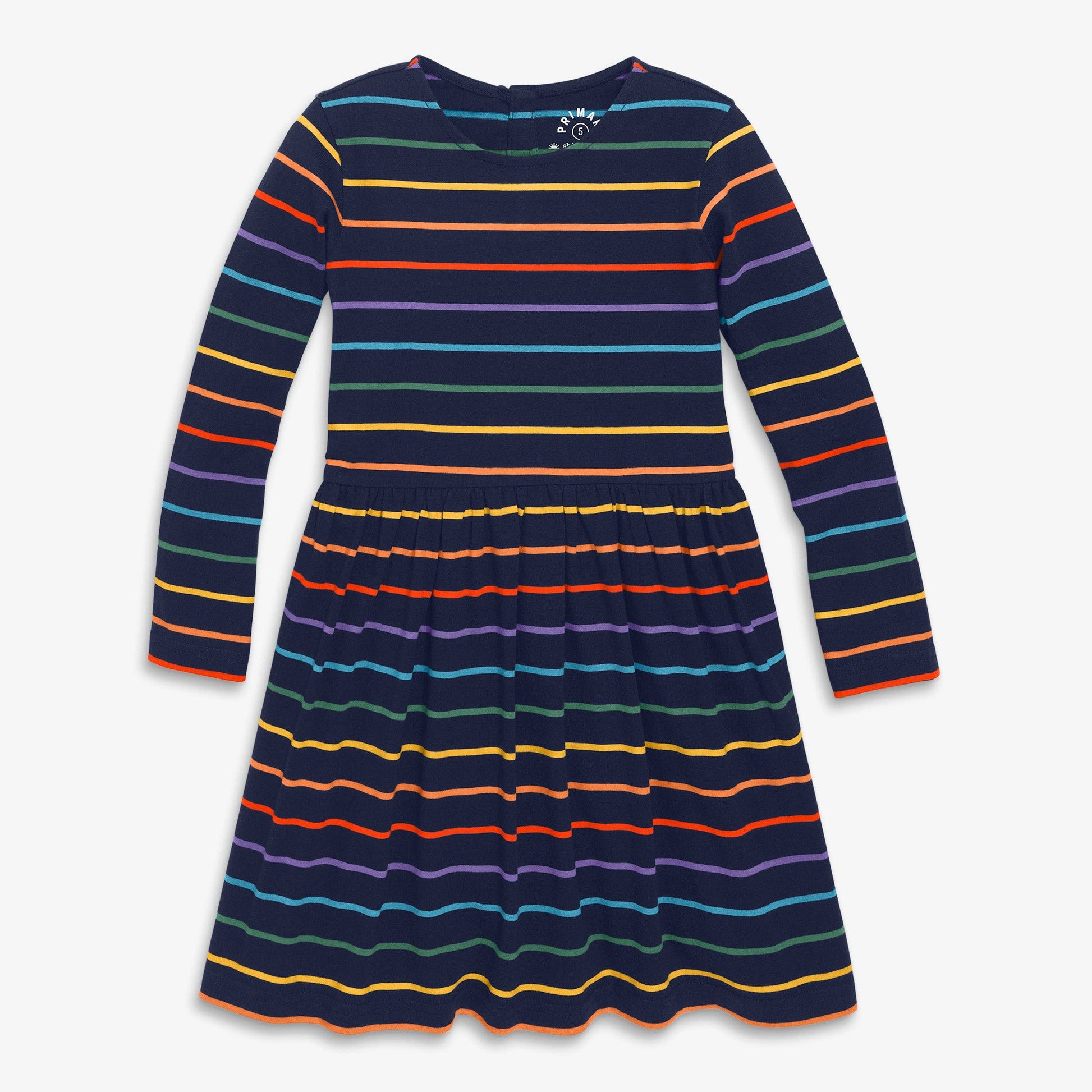 Long Sleeve Perfect Pocket Dress In Rainbow Stripe