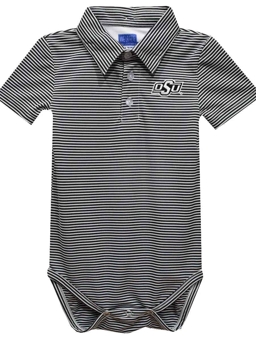 Oklahoma State Cowboys Embroidered Black Stripe Polo Onesie
