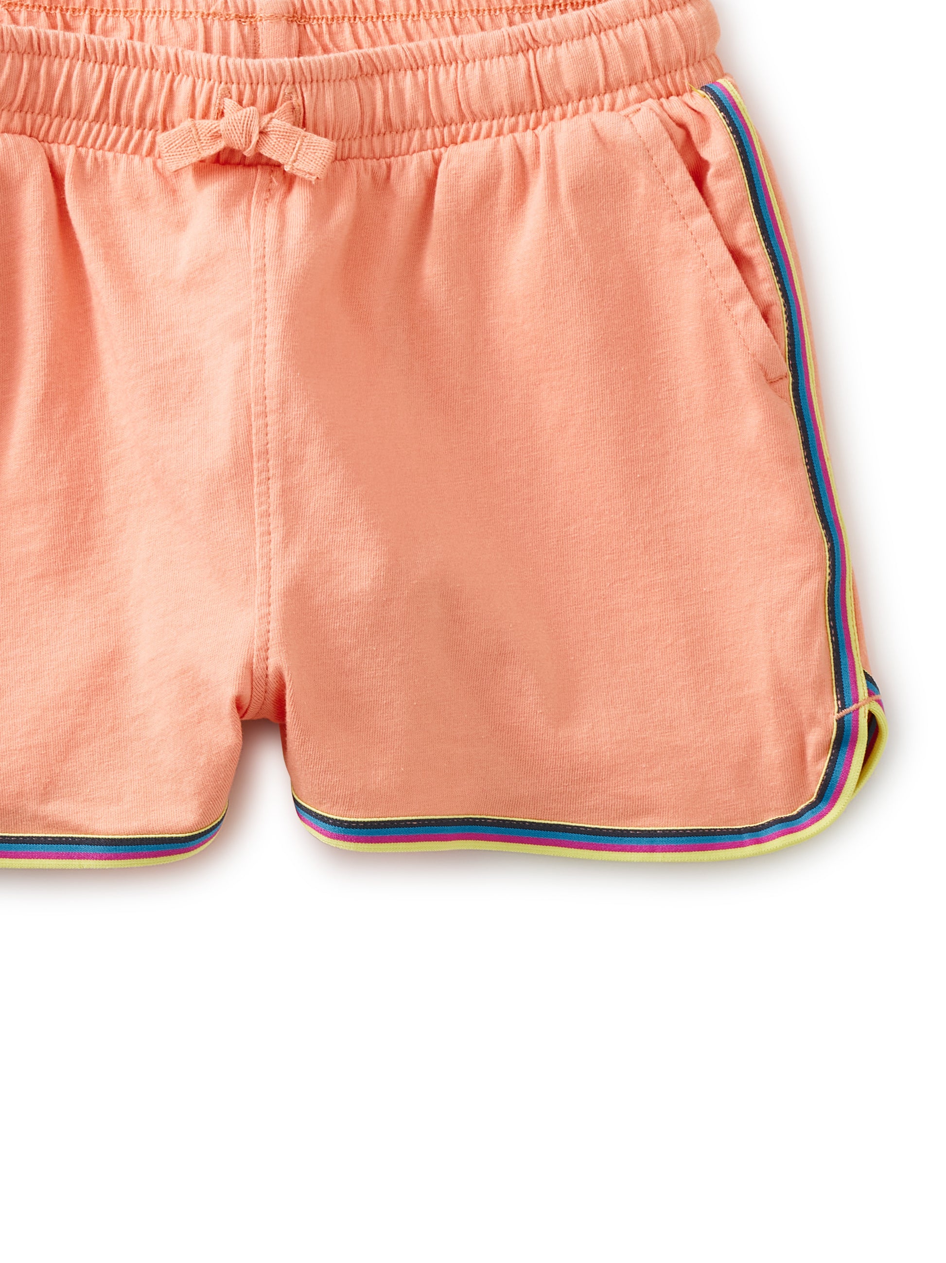 The charming vintage appeal of these rainbow-binding shorts can not be overstated. And they're functional, too, with a working drawcord, side pockets, and comfy elastic waist with a functional drawcord. Crafted from 100% soft cotton jersey.