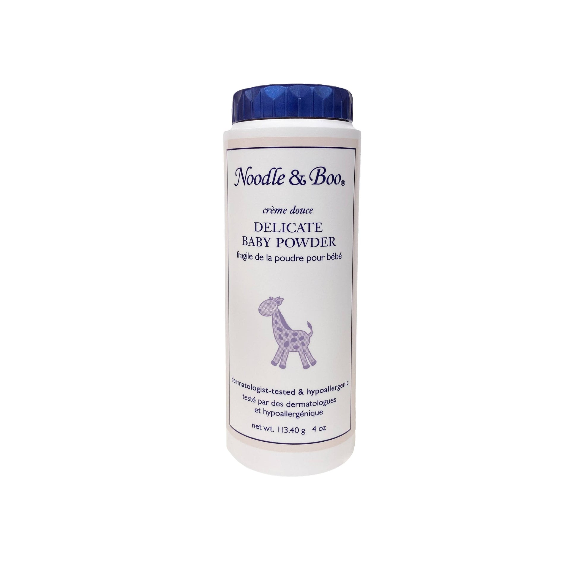 • Delicate Baby Powder — Talc-free formula with cornstarch and oatmeal to absorb moisture and protect against chafing