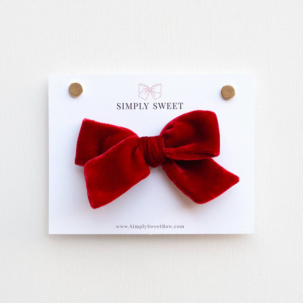 A snuggly soft velvet bow! Choose between having it attached to a soft & stretchy one size fits all nylon headband or an alligator clip which reverses to accommodate parts on either side of your little one’s head.