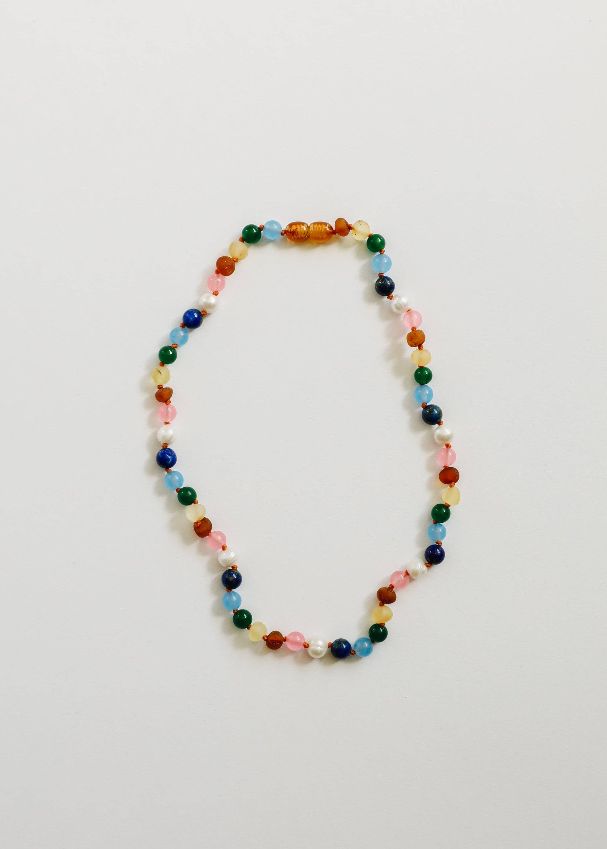 Our jewelry is handmade using original Baltic Sea Amber that is over 45 million years old. Baltic Amber has some of the highest concentrations of Succinic Acid found in nature and this is what makes it so special. Fossilized tree sap that has been preserved for millions of years under the sea. It is a true gift from Mother Nature. This style is paired with natural gemstones of agate and jade too! The string on each of our necklaces and bracelets is knotted by hand in between each and every bead, so should the necklace break (which it should if necessary), the rest of the beads will not scatter. The jewelry fastens with a classic screw clasp that opens and closes easily. We have paired Baltic Sea Amber with natural gemstones on this special style, including Agate, Jade, Lapis, Quartz and Pearls ✨ Our pieces are beautifully made, comfortable, lightweight, and radiate energies of peace and calm for the wearer. Amber jewelry is made for wearing not for chewing. Naturally....