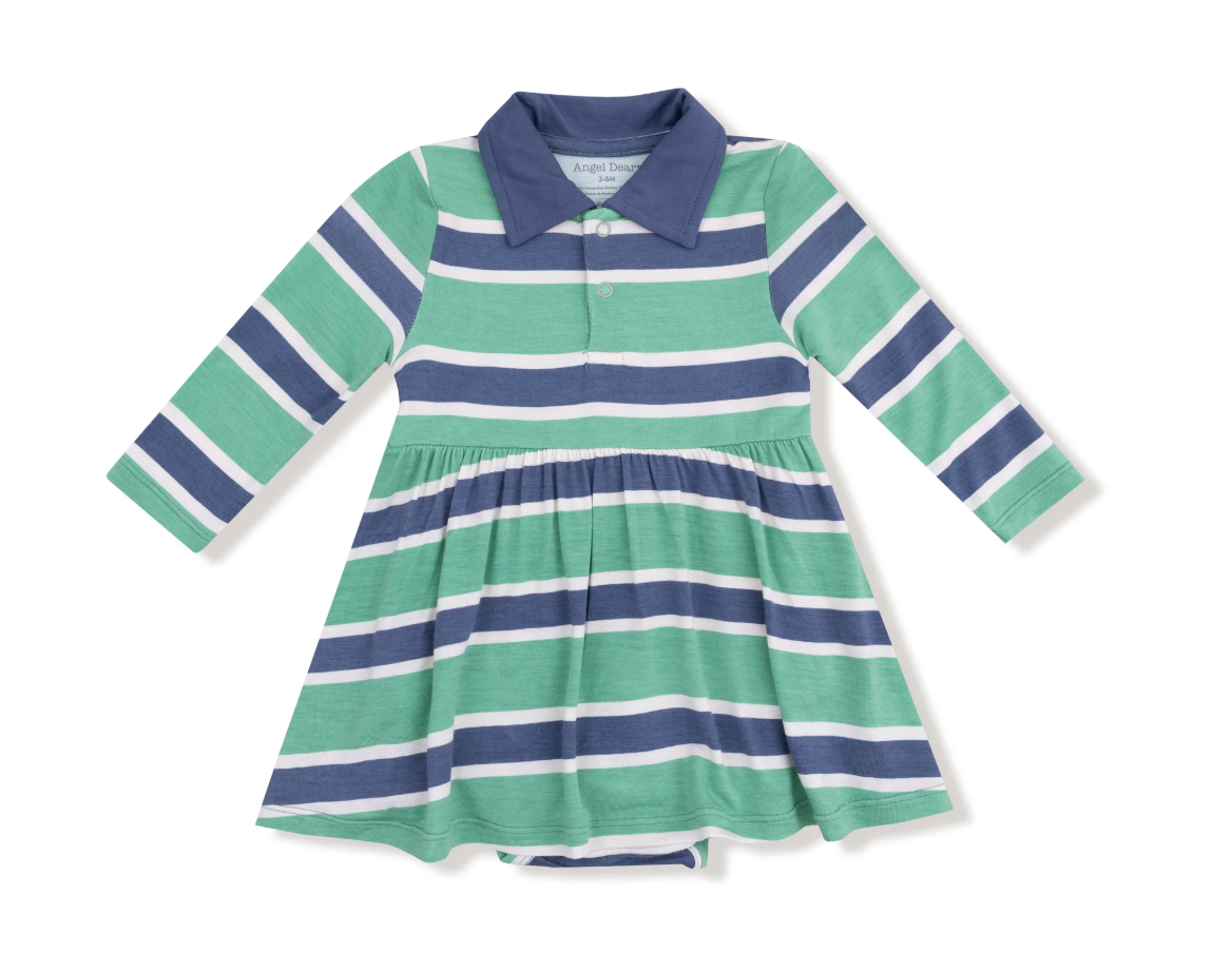 Casual comfort meets timeless style! This Long Sleeve Polo Bodysuit Dress, crafted from ultra-soft viscose from bamboo, keeps your little one cozy and looking effortlessly chic all season long. The polo collar adds a sporty twist, while the bodysuit design ensures easy changes and a snug fit—perfect for playdates, family gatherings, or everyday adventures.