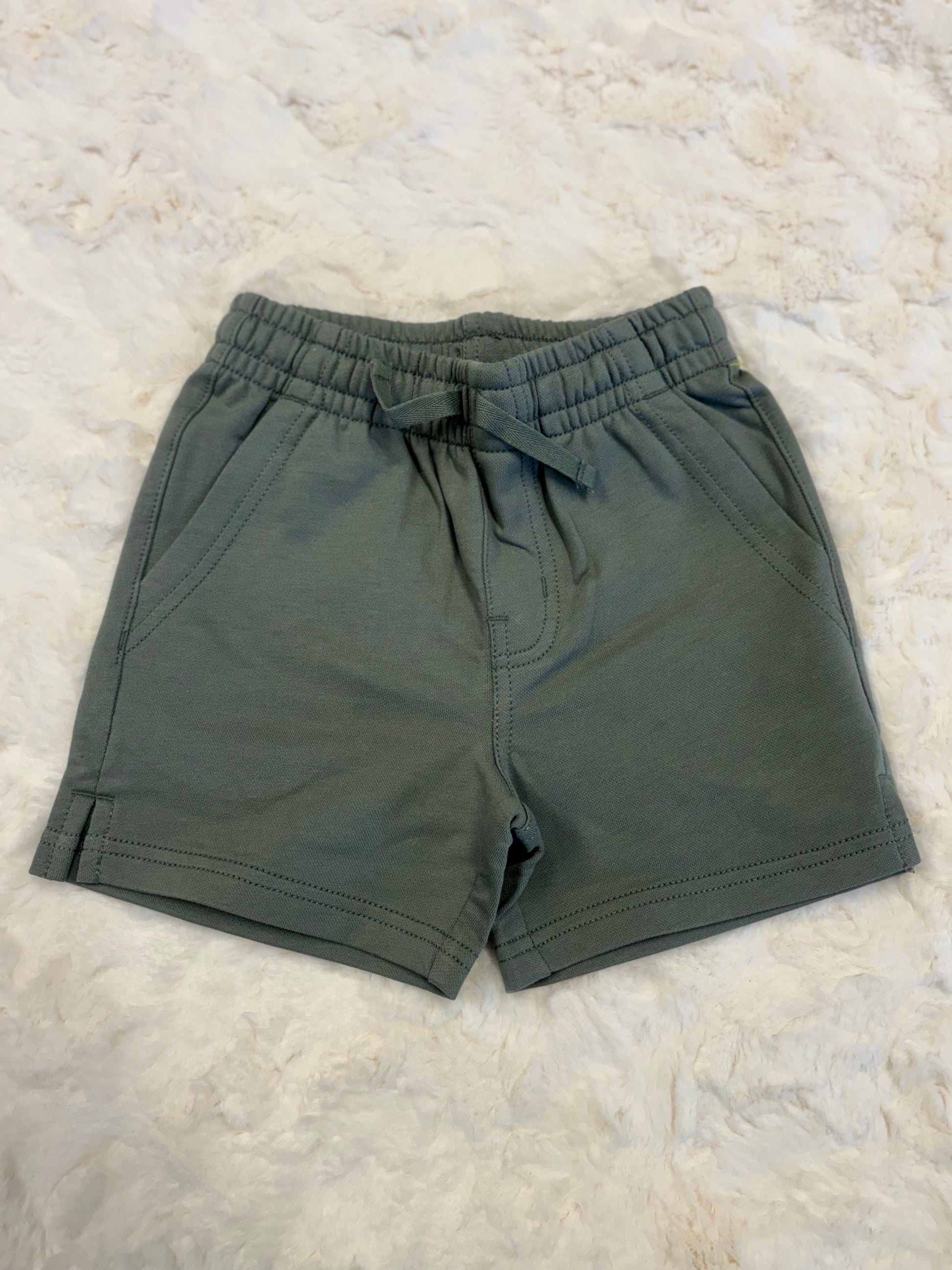 Our Knit Shortie is the perfect warm-weather staple, pairing effortlessly with a fun graphic tee. Designed with an easy-dress elastic waist and crafted from 100% soft cotton jersey, its as comfy as it is versatile. With two front pockets and one in the back, theres plenty of room for hiding treasures. Mid-thigh length for easy movement and endless play.