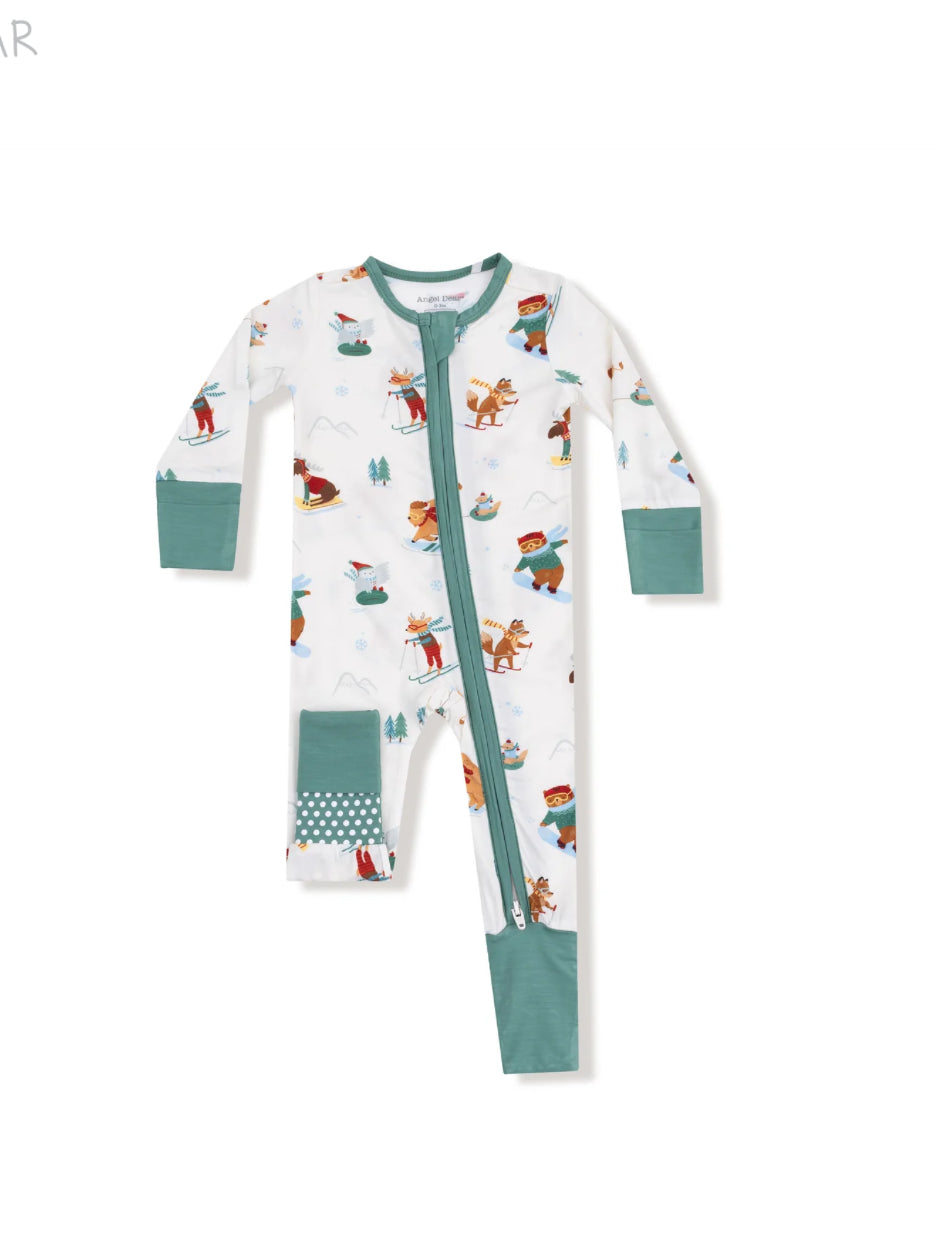 Our signature Convertible Romper makes changing your baby a Snap! (or as we like to say a Zip!) Super soft Viscose from Bamboo fiber fabric and Angel Dear's signature prints will keep the oohs and aahs a- coming. Our Convertible Rompers are designed to meet snug-fitting standardsno chemicals needed! Keep it cozy, cute, and safe by wearing these PJs nice and snug! What makes our Fold Over Rompers so special? Why the details of course! Fold-over cuffs help prevent accidental scratches 2 Way - lined zipper Zipper guard at chin Original Art Foot Grippers Folder Over Foot Cuffs Tagless for sensitive skin